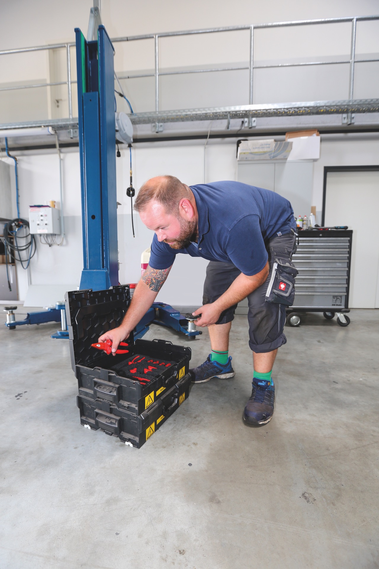 Im Kundenkreis wächst der Anteil an E-Fahrzeugen seit einigen Jahren kontinuierlich. Dabei ist natürlich zu berücksichtigen, dass die E-Mobilität nicht mehr in dem Maße dem Verschleiß von Bauteilen unterliegt wie es bei den benzinbetriebenen Autos der Fall ist. Aktuell sind wir aber mit den beiden Arbeitsplätzen an neuer Wirkungsstätte die einzige Anlaufstelle für dieses Klientel. Ob eine weitere Ausweitung irgendwann nötig wird, muss man abwarten. Auf jeden Fall werden wir uns eine Option auf das Nachbargrundstück sichern, sobald das Gewerbegebiet in den kommenden zehn Jahren erweitert wird.