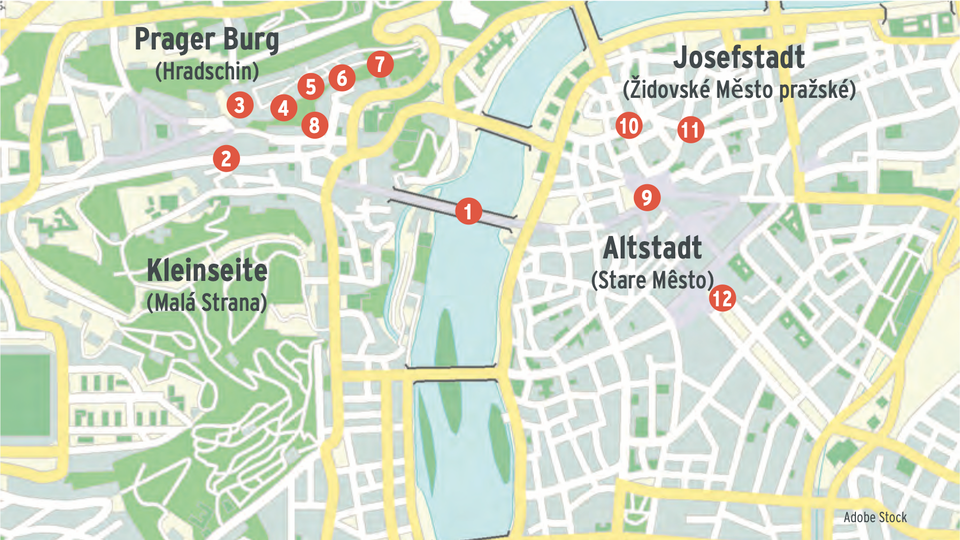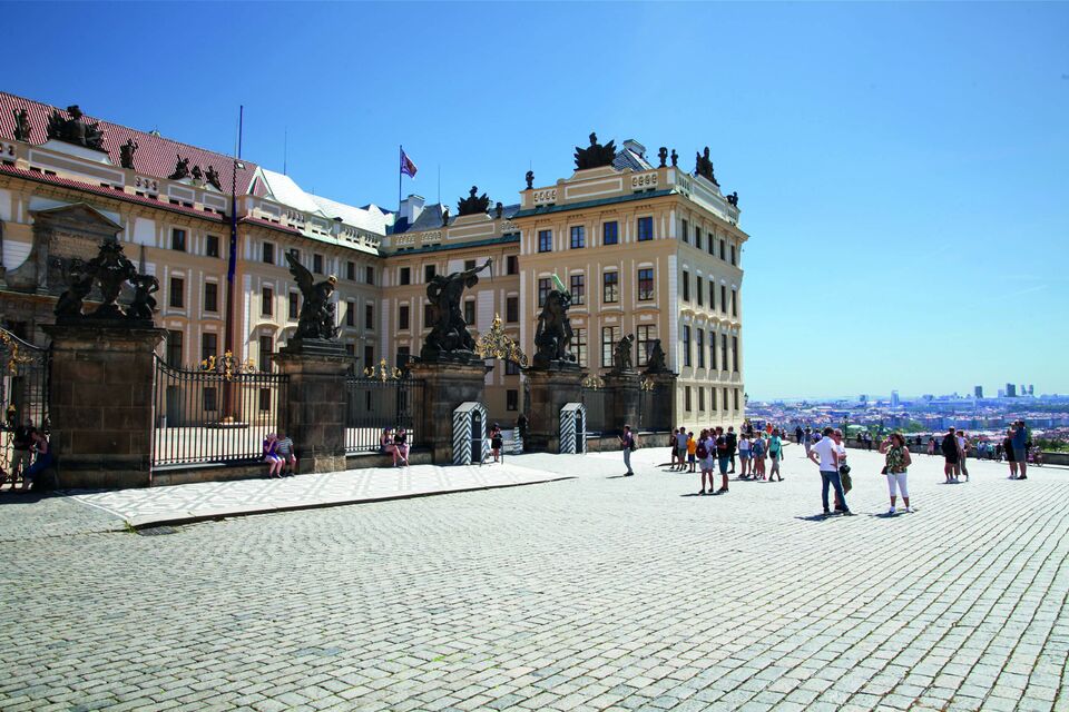 Der Hradschin bezeichnet das historische Viertel auf dem Prager Burgberg. Geprägt wird es von der weithin sichtbaren Prager Burg und dem Veitsdom. Bis heute dient die Burg dem tschechischen Präsidenten als Amtssitz. Wer hierher kommt, um die verschiedenen Sehenswürdigkeiten in dem Burgbergviertel wie den Ehrenhof, das Goldene Gässchen, die Heilig-Kreutz-Kapelle oder die Nationalgalerie im Sternberg Palais zu erkunden, sollte sich dazu den frühen Morgen auswählen, wenn das Schloss gerade erst öffnet – oder aber eine günstige Periode zwischen zwei Coronawellen...