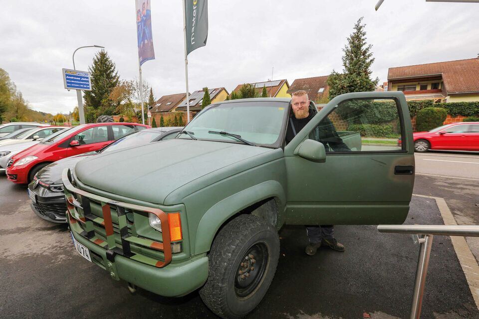 Uns ist auf dem Gelände der auffällige Wagen im Military-Look aufgefallen.