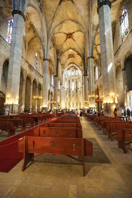 Wir befinden uns noch immer im Barri Gotic. Vor uns erhebt sich eine der bekanntesten Kirchen Kataloniens, die Santa Maria del Mar. Ihre Bauzeit mit geradezu lächerlichen 55 Jahren ist sicherlich nicht weiter erwähnenswert. Interessanter ist hingegen, dass sie das Wahrzeichen Barcelonas repräsentiert. Möchte man dem Gotteshaus einen Besuch abstatten, empfiehlt sich – wie bei fast allen hier aufgeführten Sehenswürdigkeiten – der frühe Morgen oder der späte Abend. Dann muss man hier auch kein Eintrittsgeld mehr zahlen.