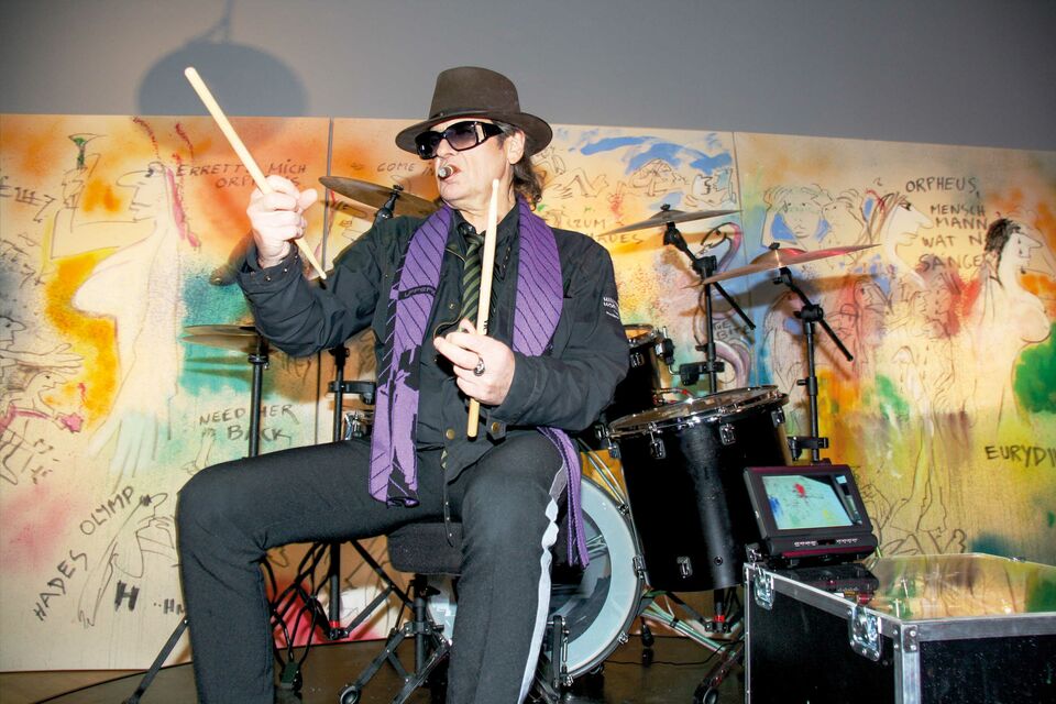 Die Fotos auf dieser Seite sind anlässlich seiner Ausstellung im MK&G Museum in Hamburg 2012 entstanden: »Udo Lindenberg als Gesamtkunstwerk aus Rock’n‘ Roll, Poesie, Coolness, Malerei und Zeitgeschichte. Mit seinem fünfzigjährigen Wirken ist er eines der herausragenden Idole in der Geschichte des deutschen Rock und Pop. Sein Leben weist dramatische und faszinierende Widersprüche auf, sein Werk vereint kongeniale verschiedene künstlerische Ausdrucksformen.